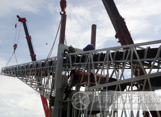 膠帶輸送機(jī)也可以叫做皮帶輸送機(jī)、帶式輸送機(jī),我公司生產(chǎn)的膠帶輸送機(jī)廣泛應(yīng)用于選礦行業(yè)物料的輸送,對(duì)于選礦工藝生產(chǎn)線來(lái)說(shuō),一般膠帶輸送機(jī)都要視客戶現(xiàn)場(chǎng)情況訂做。膠帶輸送機(jī)技術(shù)結(jié)構(gòu)簡(jiǎn)單,易于維修,常常被用來(lái)做各種選廠的輸送設(shè)備。