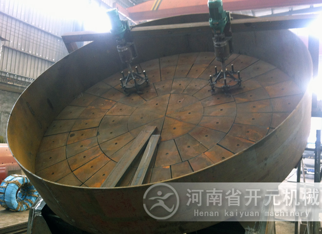 原料粉在雙軸攪拌機內被霧化水均勻濕潤,形成粒度很均勻的球核,然后送進成球盤中進行成球。料球的水分應控制在12~14%。水應大部分在雙軸攪拌機內加入,成球盤中只加入少量的補加水,補加水量控制在0~3%左右。干粉造粒則直接加在成球盤內,并噴灑適量的水份,生料球核進入成球盤后在盤內受離心力,摩擦力和重力的作用,沿拋物線運動。
