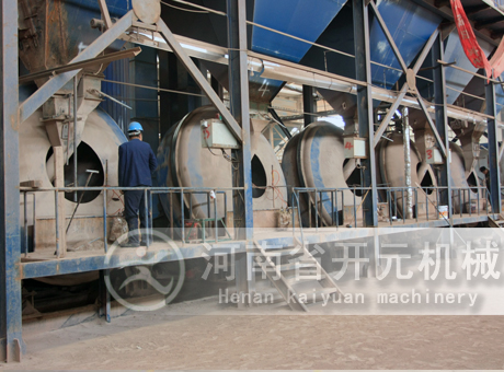物料從輸送機均勻地進入成球機,在減速機帶動下圓盤順時針旋轉、合理的加入結合劑或水、是物料自動成球達到所需粒度、從出料處排出,流入料倉或運走。